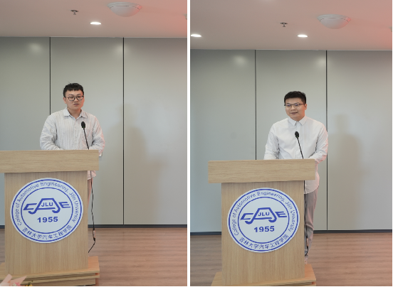 车身工程系老师曾令伟、汽车工程系老师张培兴作为新入职教工代表发言,感谢学院和先辈们对他们的培养和帮助,并表示,将铭记教书育人的神圣职责,发挥年轻人的冲劲,不辱使命、开创未来。